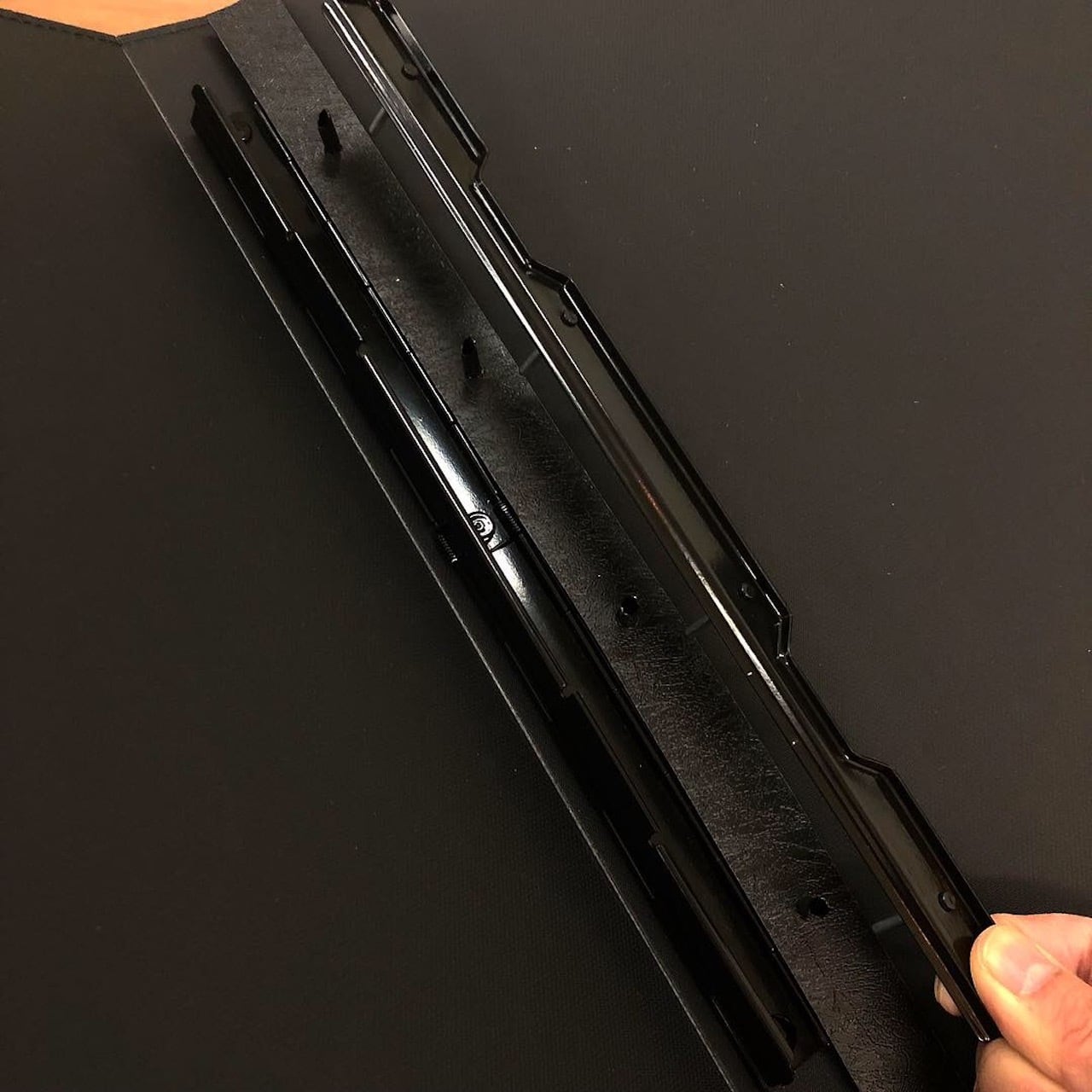 A4 サイズのポートフォリオブックは、もともとお客様の声から生まれました。学生さんや作家さんにヒアリングした中で意見として多かった「名入れ」と「ファイリングしやすい金具」にこだわり、大切な作品や資料を美しくまとめるために最適なファイルです。